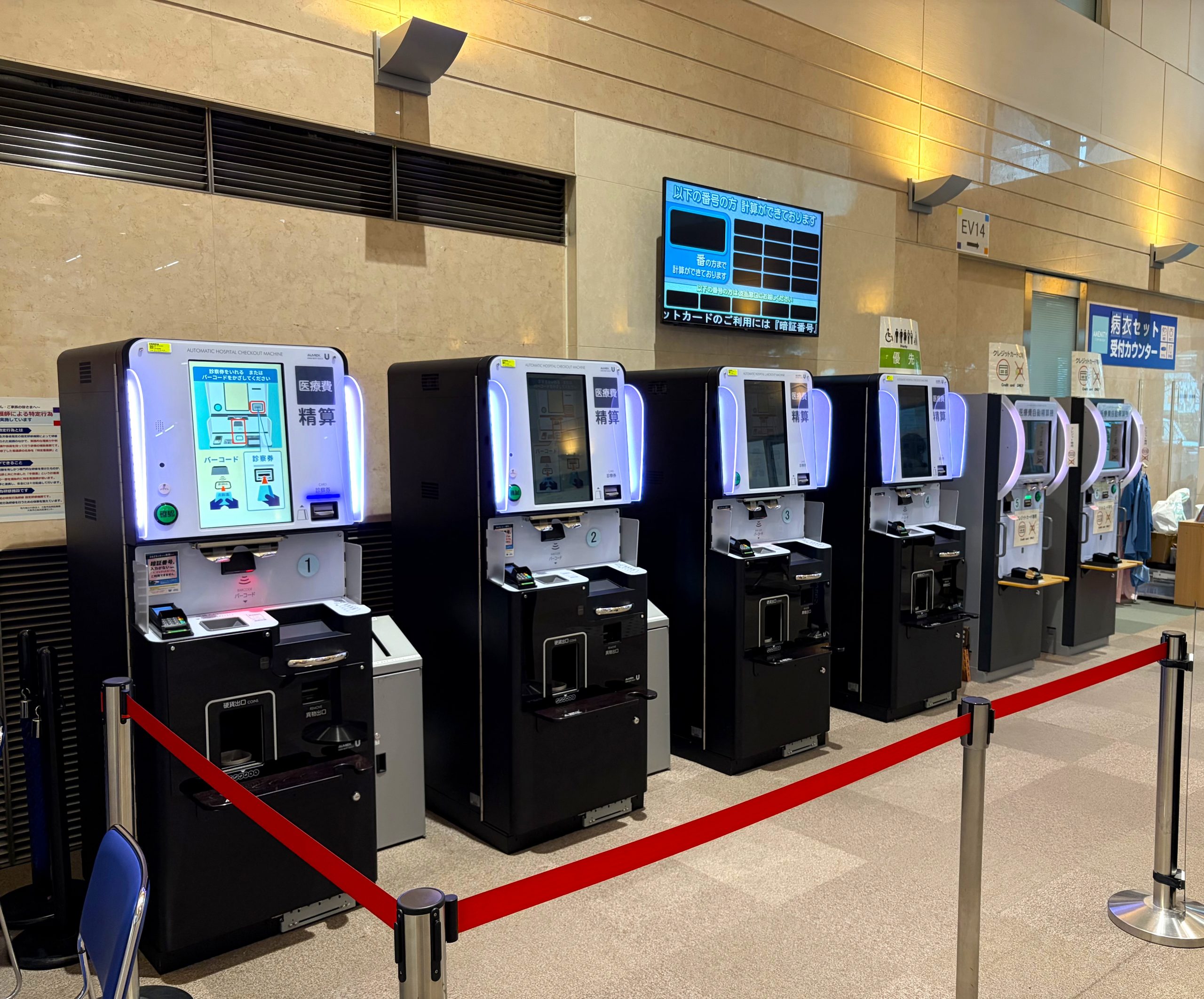 - 医療費の計算が出来ましたら、会計用電子案内板(ディスプレイ)に会計番号票の番号を表示いたします。