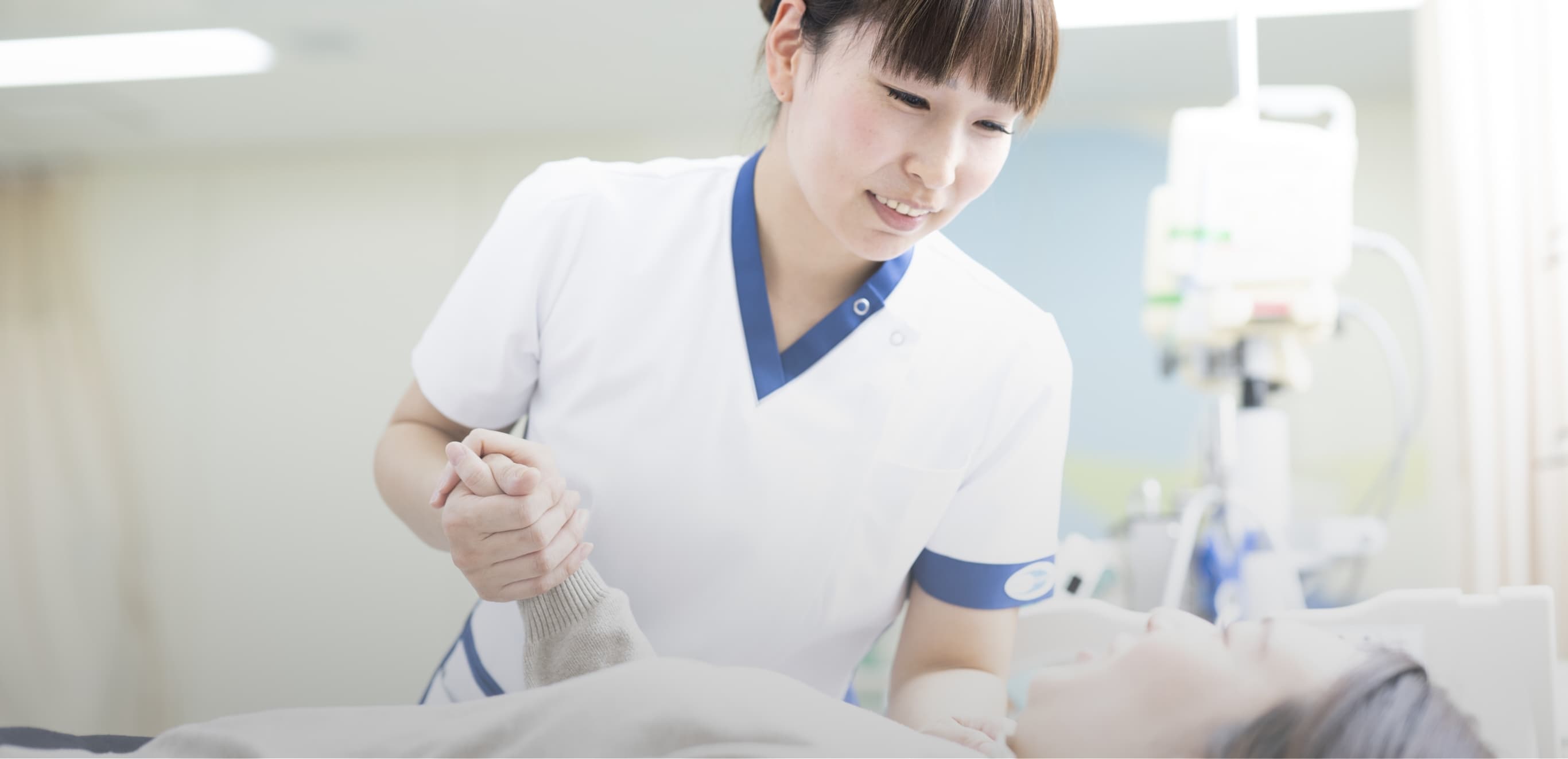 Nurse看護師・助産師私たちは、患者さんの想いに応える温かな看護を提供しています。そのために、充実した教育計画とサポート体制を整え、専門看護師や認定看護師をはじめとしたスペシャリストの育成に力を入れています。また、永く働ける職場環境の整備にも努め、看護職員が使命感とやりがいを感じながら働けるよう取り組んでいます。患者さんの健康と幸福を最優先に考えながら、共に成長していきませんか。