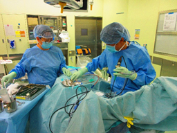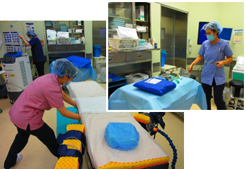 ・間接介助者…「外回り」とも呼ばれ、直接介助以外の仕事をすべて行います。患者様の状態の観察や記録のほか、病棟との連絡、様々な手配などを行い、足りない物品を取りに行くなど、いろんなことに精通しています。