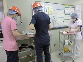 ・十三市民病院は二次救急病院なので、手術室看護師も月に1回ほど外来当直があります。当直はしっかりと患者に関わることのできる時間です。