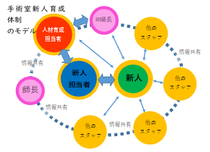・新人教育…指導者とのマンツーマンを基本に、新人の進捗を情報共有して、無理のないスモールステップを踏めるよう、スタッフ全員で関わっていきます。