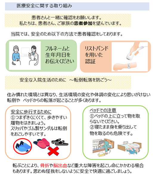 今後とも、医療安全管理体制の充実に努め、皆様から信頼される病院をめざしてまいります。