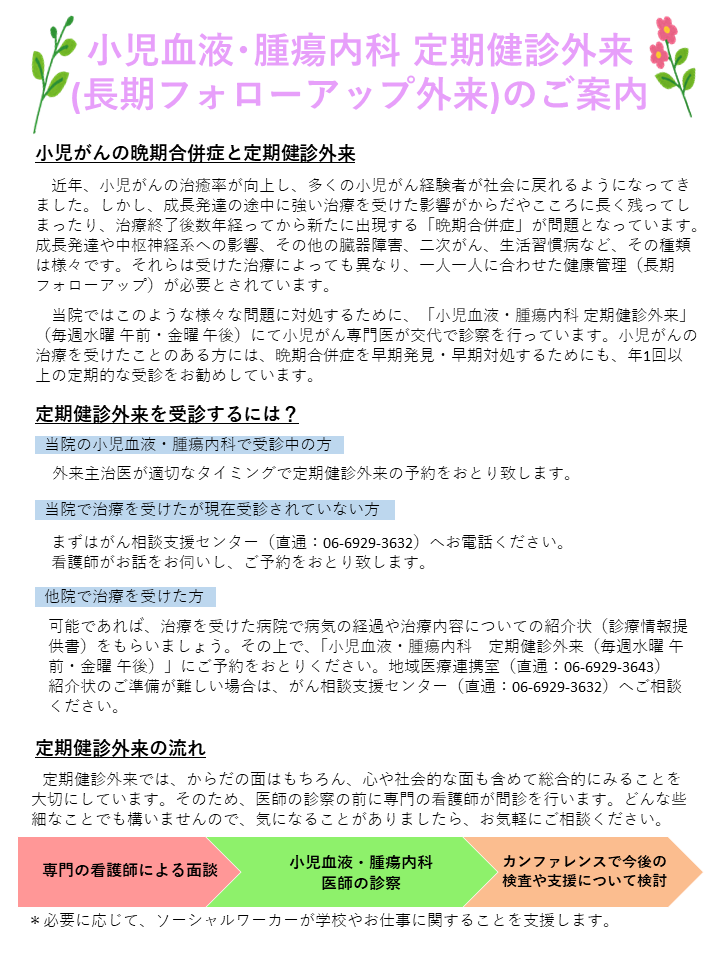 小児血液・腫瘍内科定期健診外来(長期フォローアップ外来)のご案内