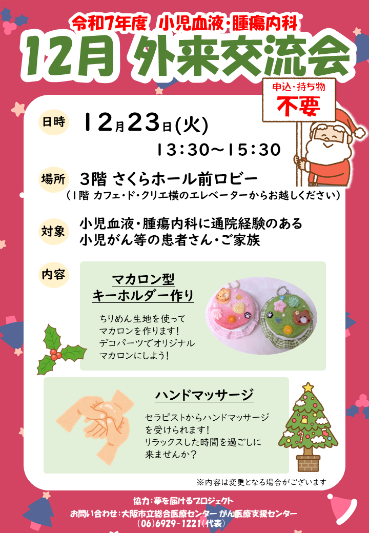 令和7年度12月 小児血液・腫瘍内科 外来交流会のお知らせ